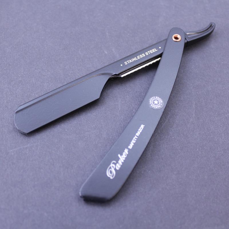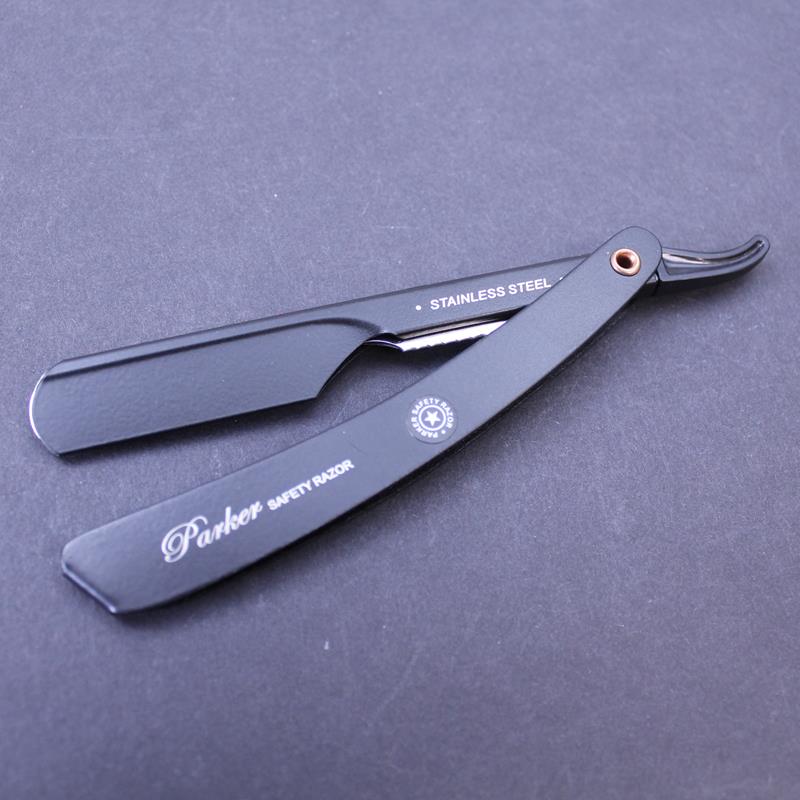 Parker’s Shavette Razors are used in barbershops and shave parlors worldwide. This razor has an “insert” which you load the blade into. You then slide the insert back into the blade arm with the blade. Unlike most shavettes, this razor has a stainless steel blade arm and handle with an elegant black finish.  Just pick your favorite double edge blade, snap it in half, put it in the razor and you’re off — No sharpening or honing required!