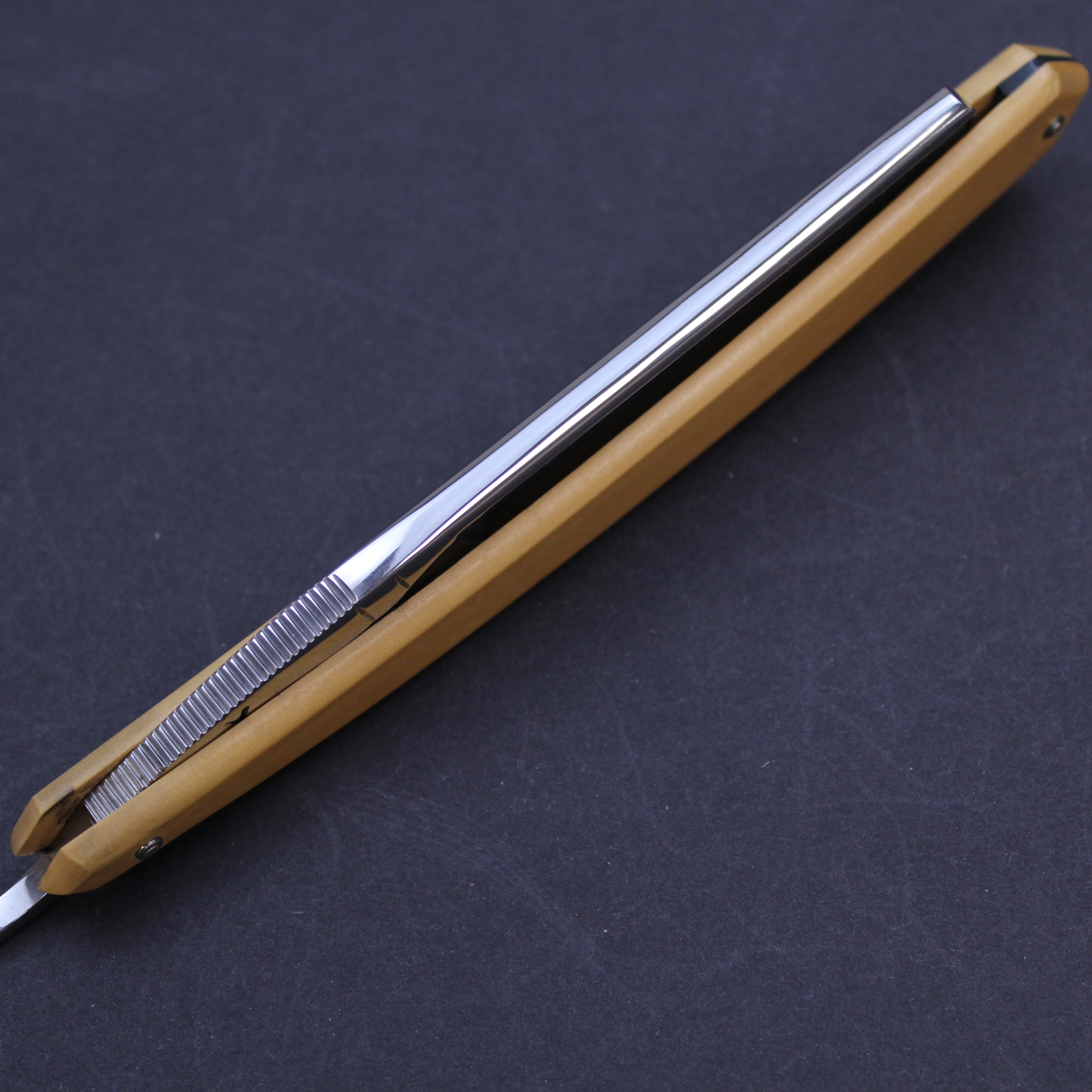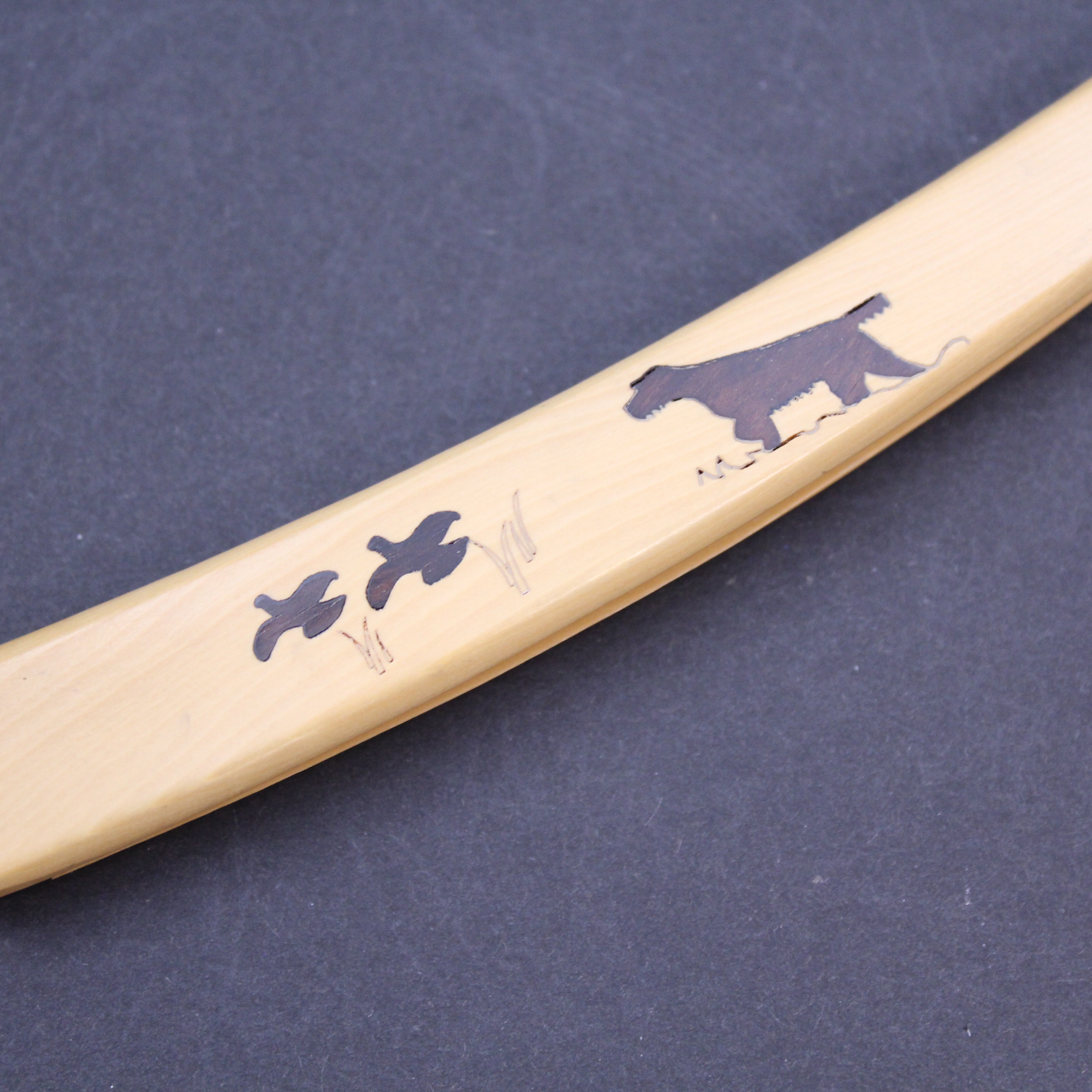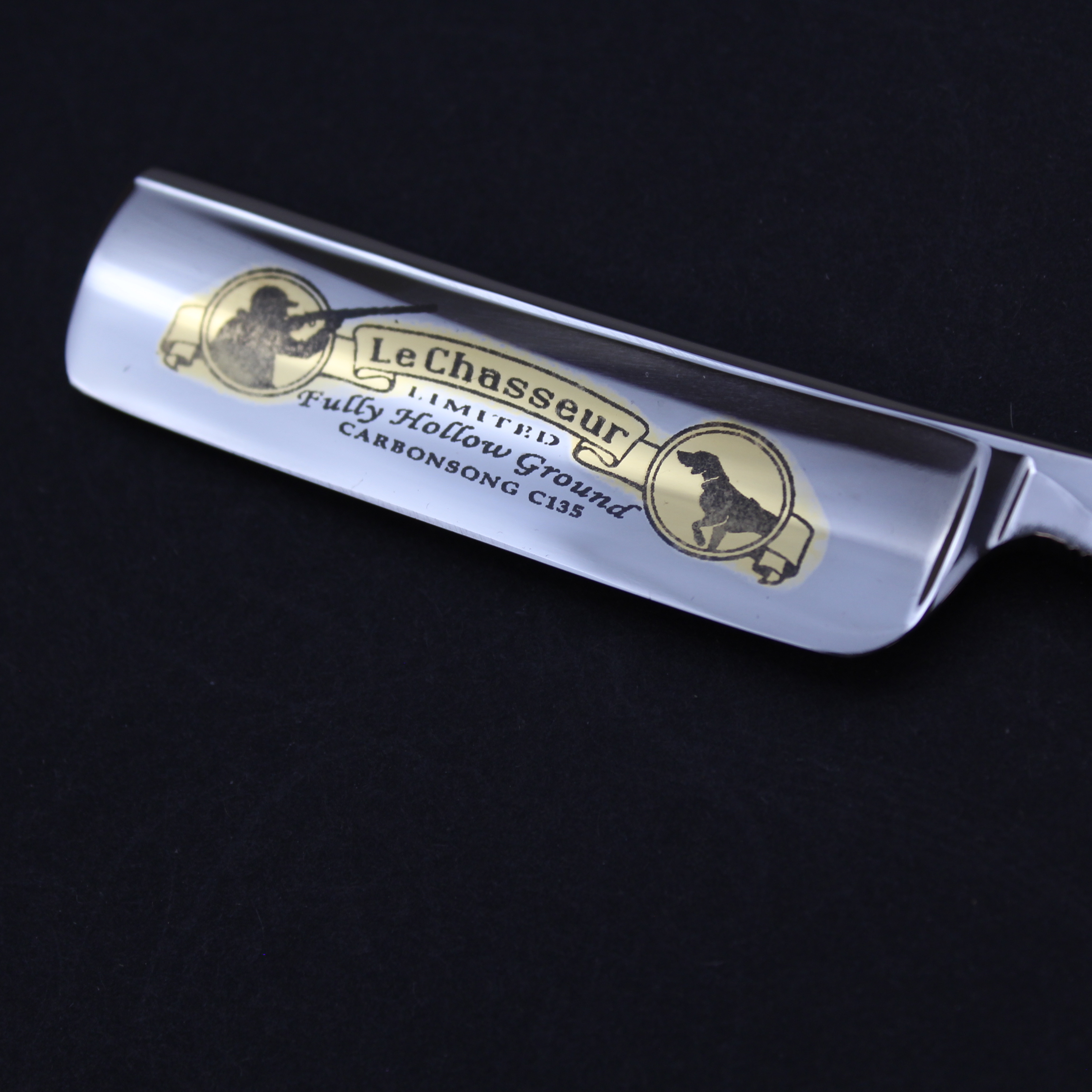 This pre-owned Le Chasseur Dog Hunt razor from Thiers-Issard  has boxwood scales inlaid with pictures of a hunting dog and two birds in flight. “Le Chasseur” means “The Hunter” and this razor is ideal for any customer with an interest in hunting.
