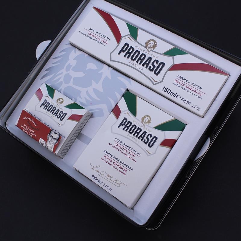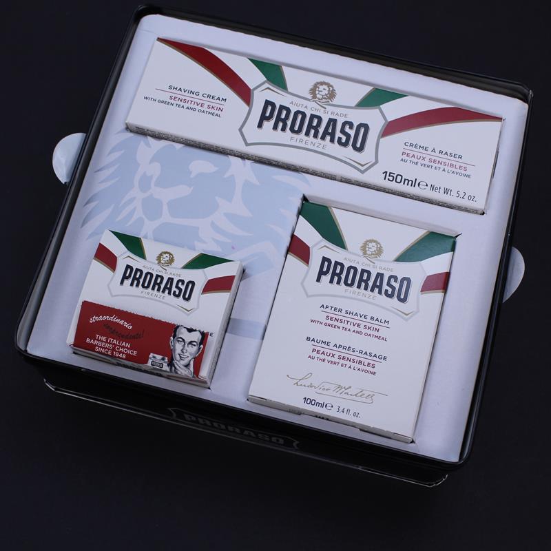 This vintage style tin contains the complete kit for the perfect shave for those with sensitive skin. The products contain oat kernel extract (rather than Eucalyptus and menthol) to give a close comfortable shave which is gentle on sensitive skin. The tin contains a 100ml jar of Pre Shave Cream, a 150ml tube of Shaving Cream and a 100ml jar of After Shave Lotion to complete your shaving regime. The tin makes an excellent gift for the wet shaver and provides a perfect place to keep your shaving related items when the contents are all used up.