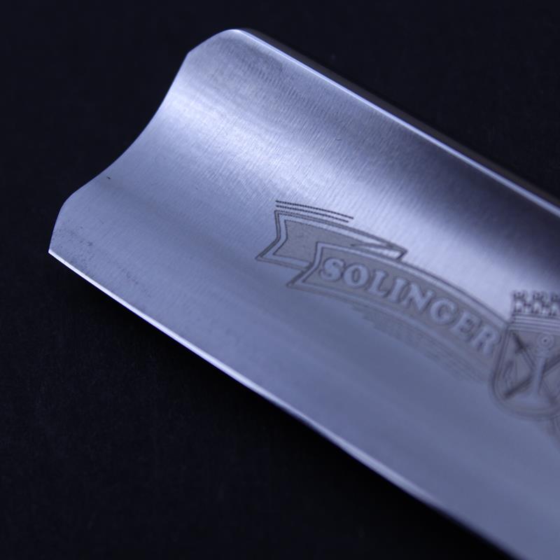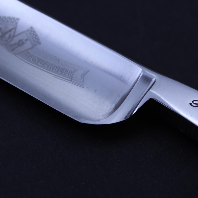 This razor is for a more experienced straight razor user looking for a large razor with some weight to it. There are a couple minor imperfections on the top of the spine and a few speckles on the face of the blade which we have tried to show in the photographs.