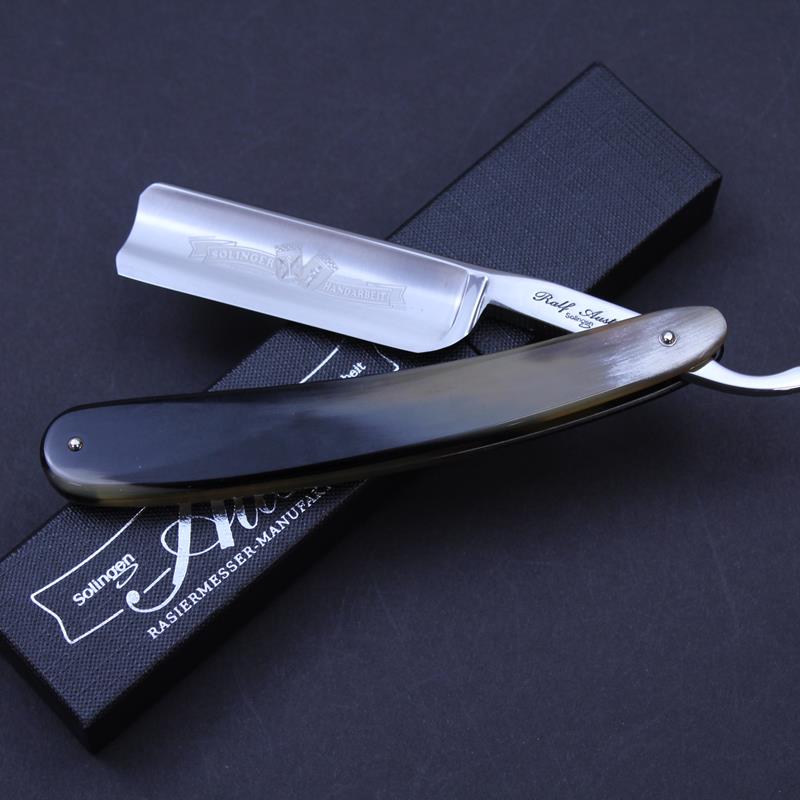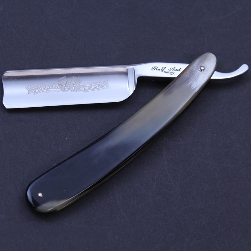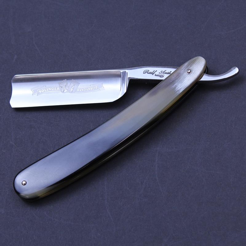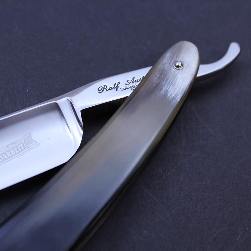 The scales on these razors are in the traditional style. They are highly polished to show off the horn’s colouring to its best advantage. All Ralf Aust razors have a full hollow ground blade.